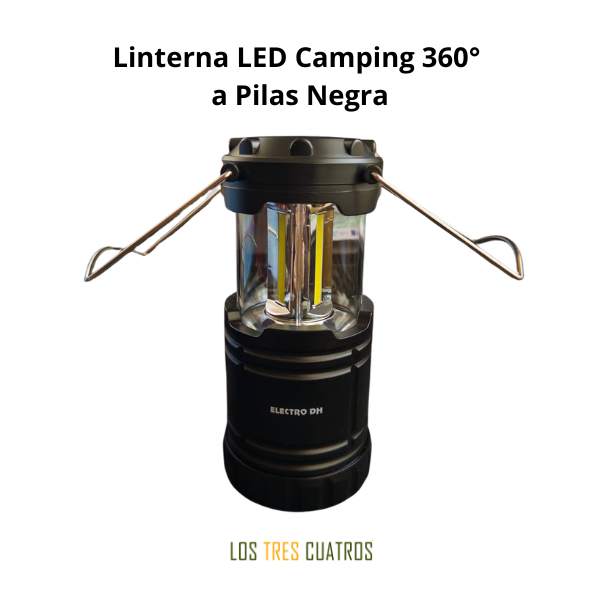 Linterna LED Camping 360° Negra a Pilas con Asas Plegables – Electro DH